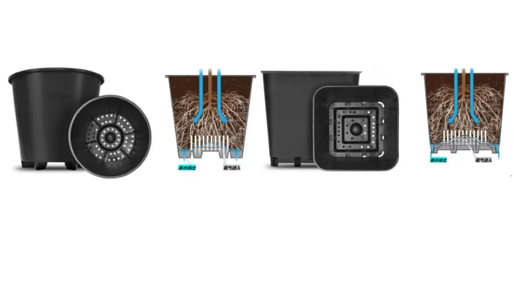 這種栽培容器最大的優勢就是底部多孔設計,能使排水向下及四周順利排出。讓足夠的氧氣進入到種植盆底部,增強了空氣流通,起到了控根效果。