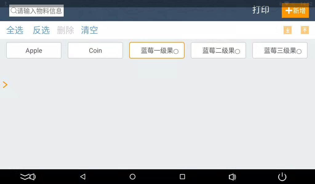 物料管理頁麵可新增多種物料,支持物料搜索,更改和刪除。