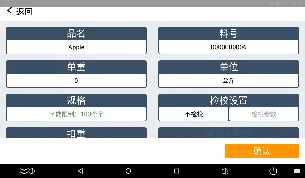每種物料信息裏可設置品名,料號等多種屬性跟參數,稱重時自動記錄。